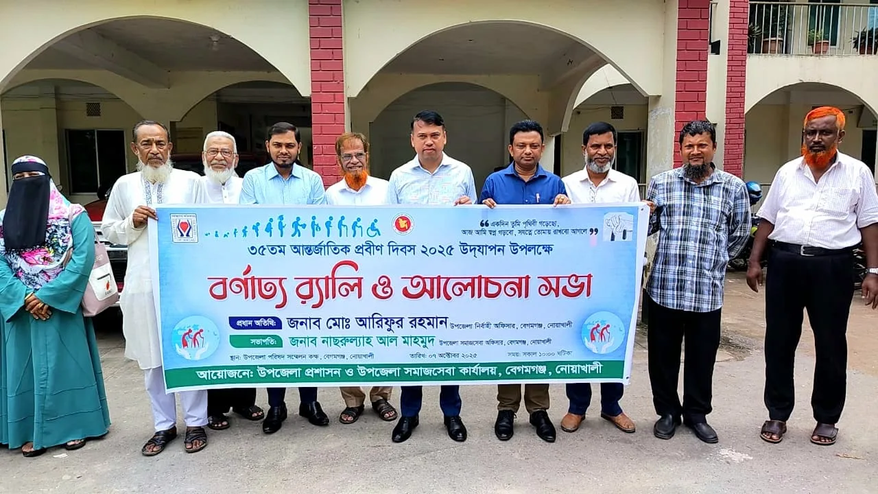 রবিউল হাসান, নোয়াখালী প্রতিনিধি: নোয়াখালীতে আন্তর্জাতিক প্রবীণ দিবসে শুধু মাত্র ২জন প্রবীণ ও উপজেলা কর্মকর্তা কর্মচারীদের নিয়ে প্রবীণ দিবস পালিত হয়েছে। ঘটনাটি ঘটেছে জেলার বেগমগঞ্জ উপজেলায়।মঙ্গলবার সকালে উপজেলার সামনে উপজেলা সমাজসেবা কর্মকর্তার আয়োজনে প্রবীণ দিবস উপলক্ষে এ আয়োজন করা হয়।