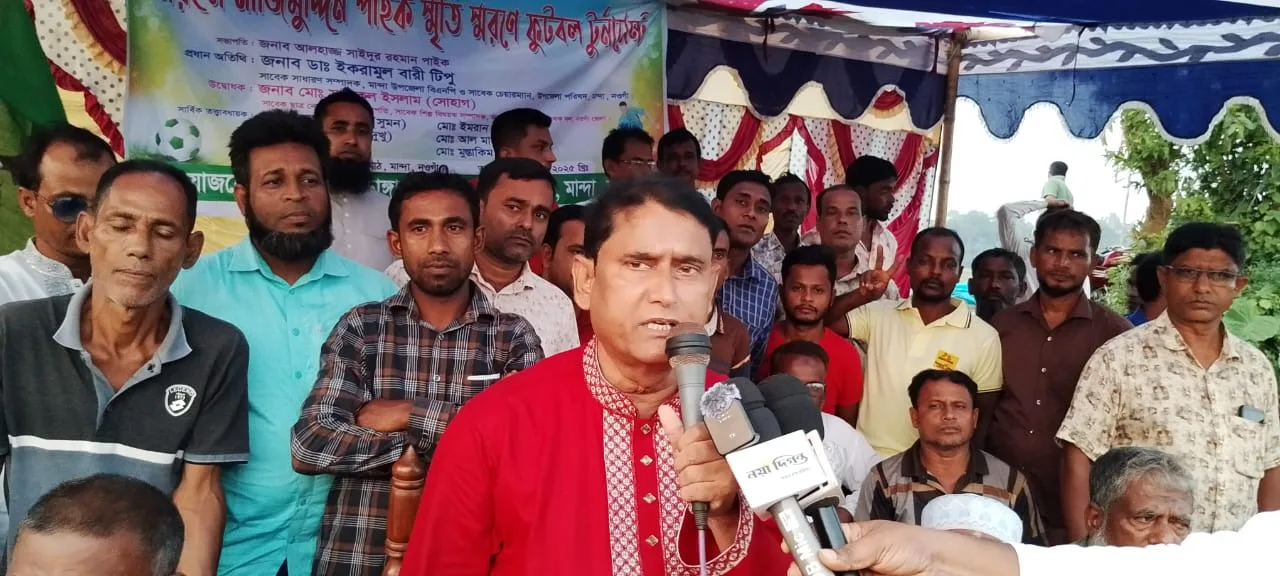 আল আমিন স্বাধীন, মান্দা ‌‌‍(নওগাঁ): ইয়ং জেনারেশন ২৪ গণঅভ্যুত্থানে যেভাবে নেতৃত্ব দিয়েছে আগামী দিনেও একটা নির্বাচন আসতেছে ওই নির্বাচনে এই ইয়ং জেনারেশন কে একটা অগ্রণী ভূমিকা পালন করতে হবে ‌। আমরা একই দল করবো দলের মধ্যে থেকে আমরা নেতৃত্বের প্রতিযোগিতা করবো মনোনয়নের চেষ্টা আমরা সবাই করতে পারি । দল যাকে মনোনয়ন দিবে তার জন্য আবার ঐক্যবদ্ধ হয়ে আমরা একসাথে কাজ করবো । বৃহস্পতিবার বিকেলে উপজেলার নূরুল্লাবাদ ইউনিয়নের চকভোলাই ডাঙ্গাপাড়া মরহুম নাজিমুদ্দিন পাইক স্মৃতি স্মরণে ফুটবল টুর্নামেন্ট অনুষ্ঠানে প্রধান অতিথির বক্তব্যে এসব কথা বলেন উপজেলা বিএনপির সাবেক সাধারণ সম্পাদক ও সাবেক উপজেলা চেয়ারম্যান ডাঃ ইকরামুল বারী টিপু ।