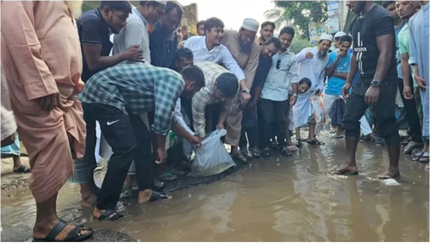 কাচিসার সড়কে মাছ ছেড়ে এনসিপির হাসনাত আবদুল্লাহর প্রতিবাদ