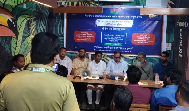 আলোচনা সভাটি সঞ্চালনা করেন বাংলাদেশ জাতীয়তাবাদী সাইবার ফোর্স-এর কেন্দ্রীয় চেয়ারম্যান মোঃ মামুন রানা।