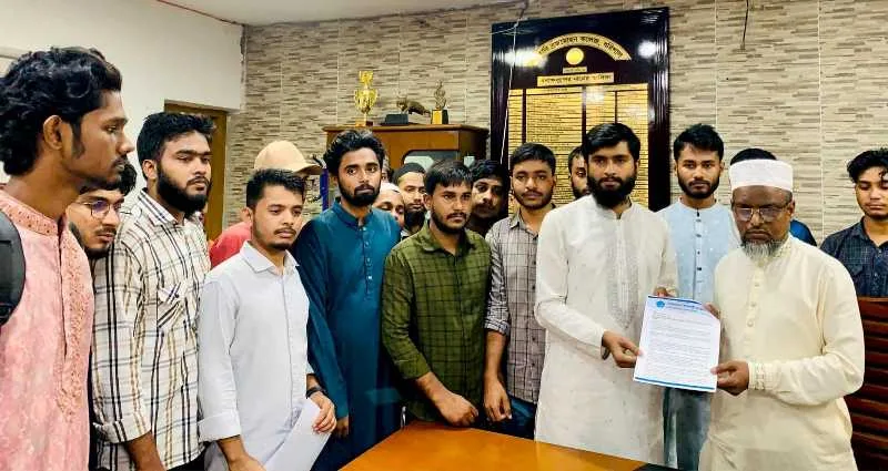 মেহেরাব হোসেন রিফাত, বিএম কলেজ প্রতিনিধি (বরিশাল) : বরিশাল সরকারি ব্রজমোহন (বিএম) কলেজে বাকসু নির্বাচন আয়োজন, জুলাই চত্বর নির্মাণ, শতভাগ আবাসনসহ ১৩ দফা দাবিতে অধ্যক্ষ বরাবর স্মারকলিপি প্রদান করেছে বাংলাদেশ ইসলামী ছাত্রশিবির বিএম কলেজ শাখা। এ উপলক্ষে রবিবার (৭ সেপ্টেম্বর) দুপুরে কলেজের প্রশাসনিক ভবনের সামনে এক সংবাদ সম্মেলন অনুষ্ঠিত হয়।
