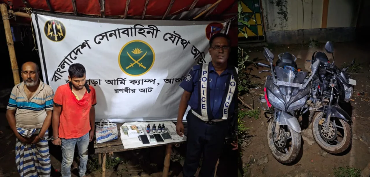 আশুলিয়ায় ফেনসিডিলসহ আটক ২- নগদ টাকাসহ মোটরসাইকেল জব্দ