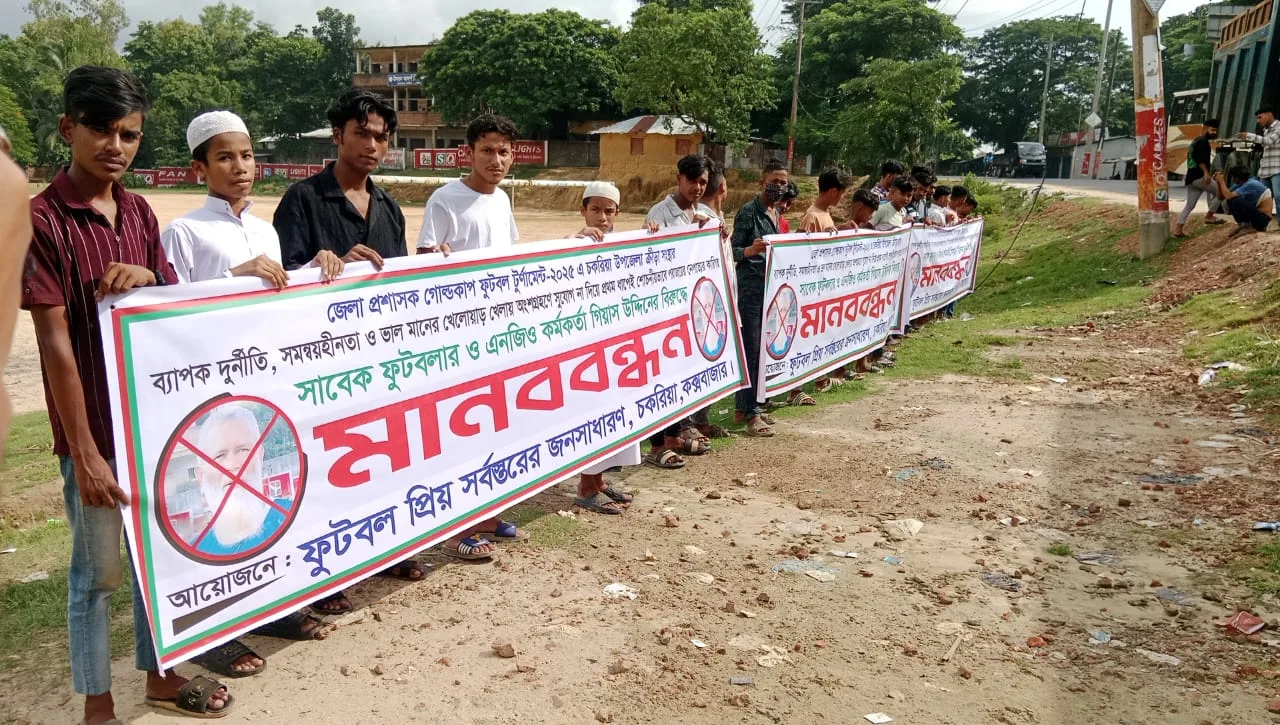 জেলা প্রশাসক ফুটবল টুর্নামেন্টে চকরিয়ার হার; সাবেক ফুটবলার গিয়াসউদ্দিনের বিরুদ্ধে মানববন্ধন