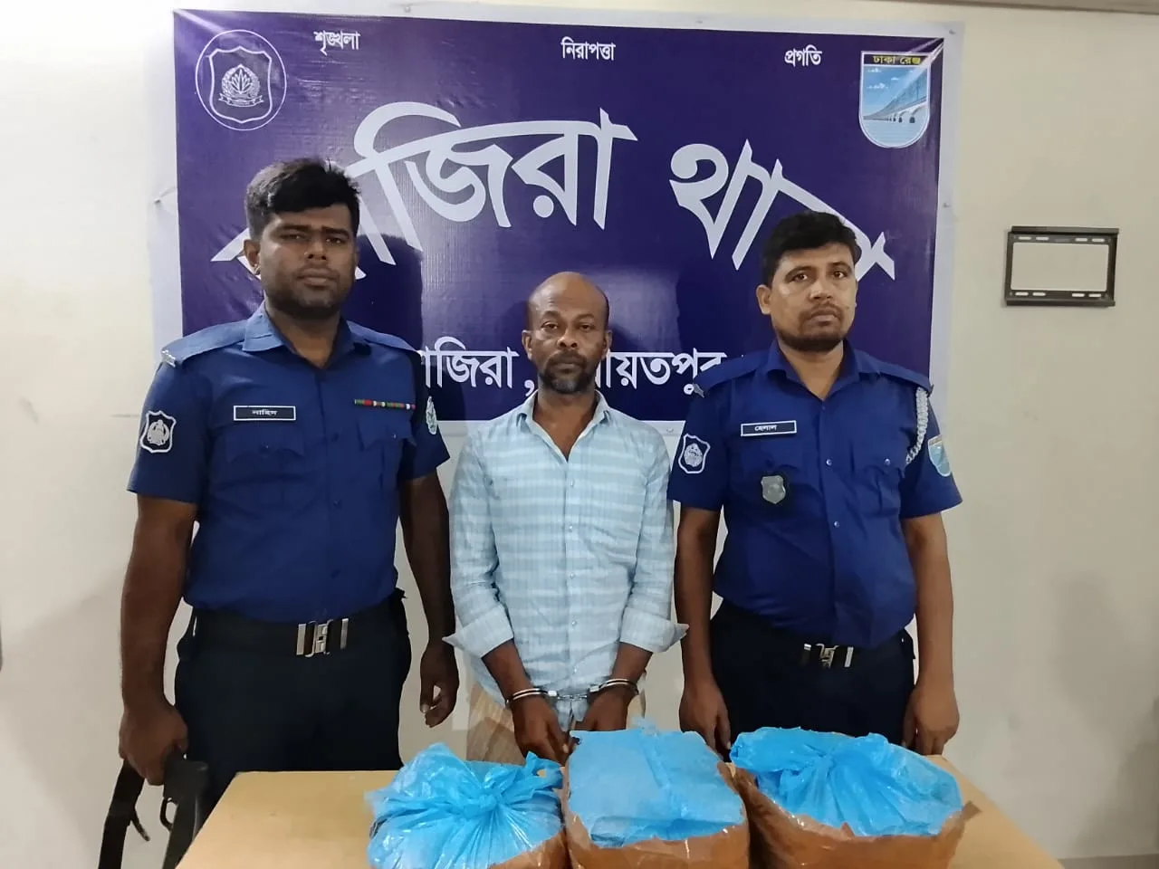 মো: আমির হোসেন, জেলা প্রতিনিধি,শরীয়তপুর: শরীয়তপুর জেলার জাজিরা উপজেলার জাজিরা থানা কর্তৃক মাদক বিরোধী বিশেষ অভিযান পরিচালনা করে ৫ কেজি গাঁজাসহ এক মাদক কারবারিকে গ্রেফতার করেছে থানা পুলিশ।