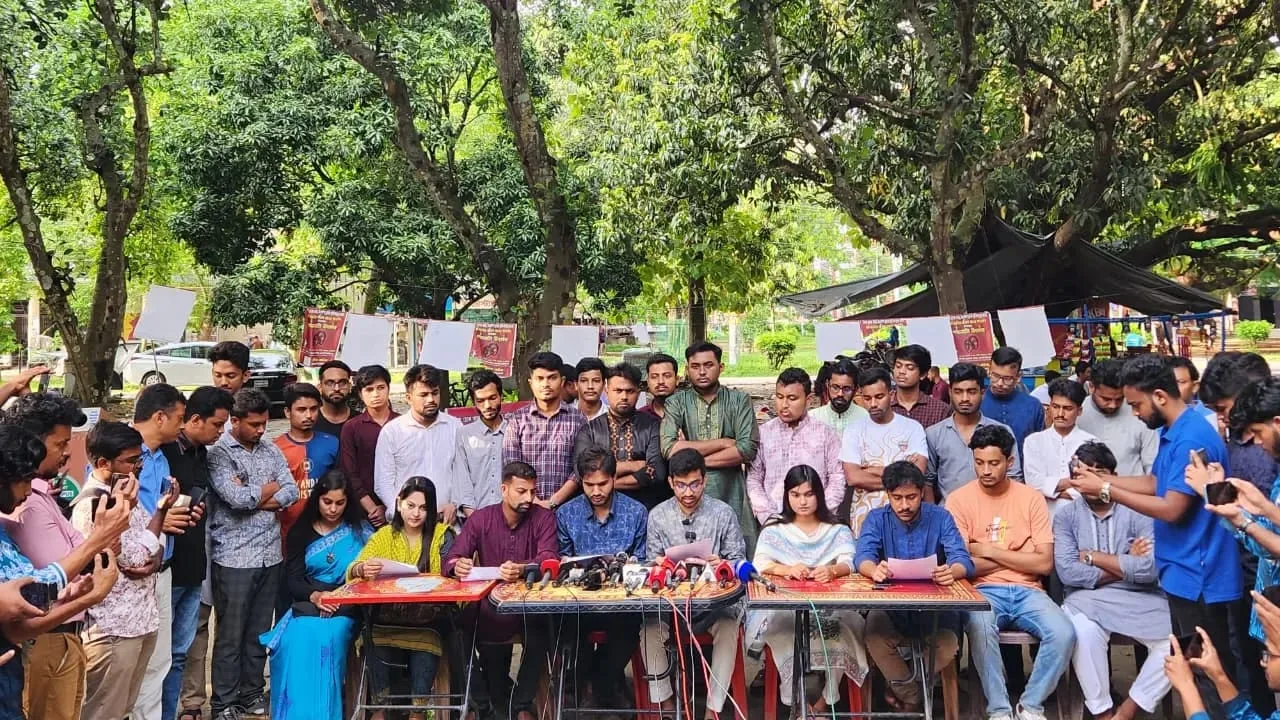 এর আগে লিখিত বক্তব্য পাঠ করেন ছাত্রদল-সমর্থিত প্যানেলের ভিপি প্রার্থী শেখ নূর উদ্দিন আবীর। তিনি অভিযোগ করে বলেন, “তফসিল ঘোষণার পর থেকেই নির্বাচন কমিশনের দুর্বলতা স্পষ্ট হয়েছে। এতে অনিশ্চয়তা বাড়ছে।” তিনি আরও অভিযোগ করেন, “ছাত্রশিবির আচরণবিধি উপেক্ষা করে হলে হলে আতর বিতরণ, পানির ট্যাংক বসানো ও নানা আয়োজন করছে, যা নির্বাচনে প্রভাব ফেলতে পারে। আমরা অভিযোগ করলেও কমিশন কার্যকর ব্যবস্থা নেয়নি।”