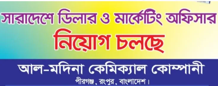 ভোরের দূত ডেস্ক: রংপুরের পীরগঞ্জে অবস্থিত প্রতিষ্ঠিত আল মদিনা কেমিক্যাল কোম্পানিতে এস.আর (সেলস রিপ্রেজেন্টেটিভ) ও ডিলার নিয়োগ দেওয়া হবে।