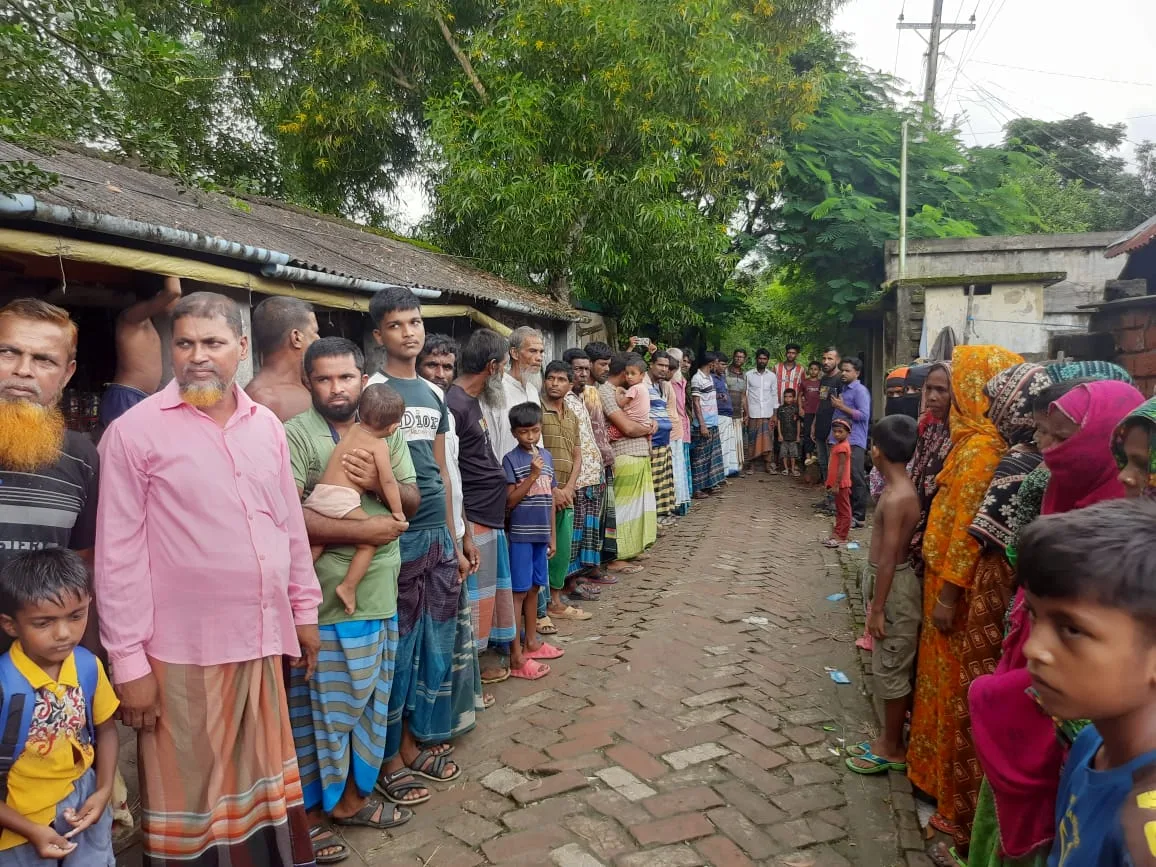 সোমবার দুপুরে গ্রামে কয়েক শত মানুষ মানববন্ধন করে অভিযুক্তদের দ্রুত গ্রেফতারের দাবি জানিয়েছেন। মানববন্ধনে স্থানীয় নারী-পুরুষের পাশাপাশি বিভিন্ন শ্রেণি পেশার মানুষ অংশ নেন। তারা বলেন, এ দুই ভাই দীর্ঘদিন ধরে গ্রামের ৭ জন প্রবাসীর কাছ থেকে চাঁদা নিয়ে আসছে। টাকা না দিলে হুমকি-ধমকি থেকে শুরু করে হামলাও করছে।