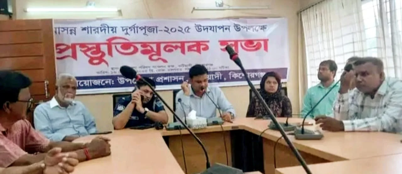 কিশোরগঞ্জের কটিয়াদী উপজেলায় আসন্ন শারদীয় দূর্গাপূজা-২০২৫ উদযাপন উপলক্ষ্যে প্রস্তুতি সভা অনুষ্ঠিত হয়েছে।