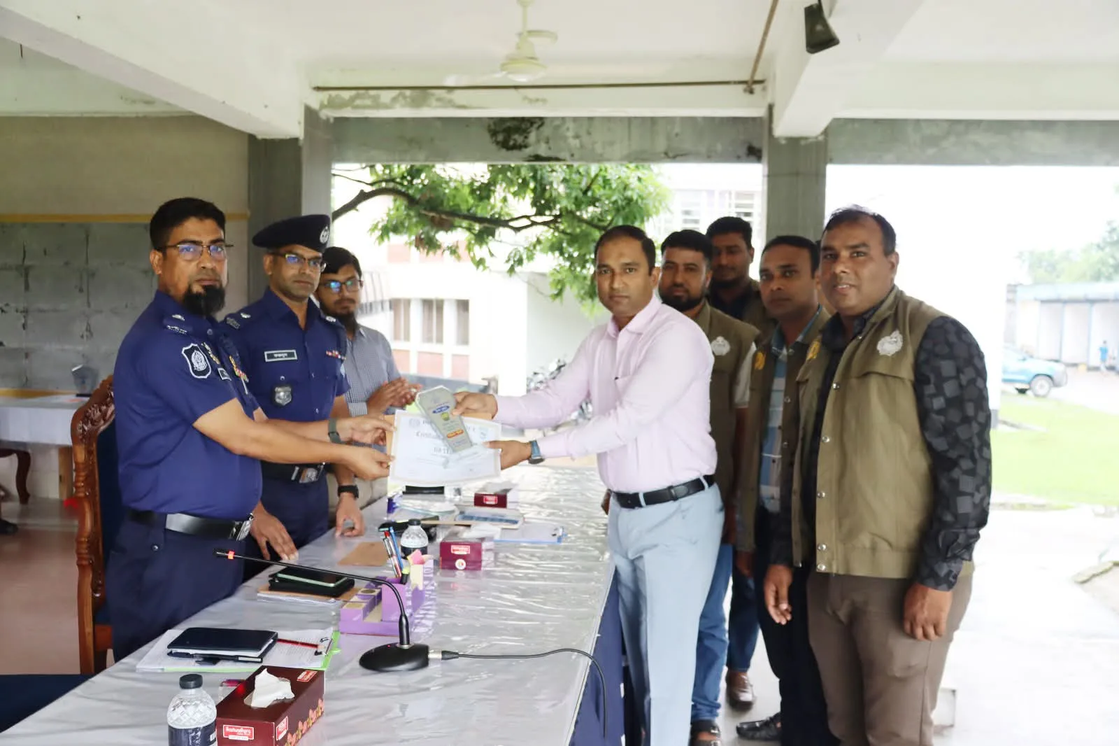 কল্যাণ সভায় সভাপতি মহোদয় আগস্ট/২৫ মাসের অপরাধ পর্যালোচনায় ভাল কাজের ভিত্তিতে নির্বাচিত শ্রেষ্ঠ অফিসার ও ফোর্স’গনকে সম্মাননা ক্রেস্ট ও সনদপত্র তুলে দেন।