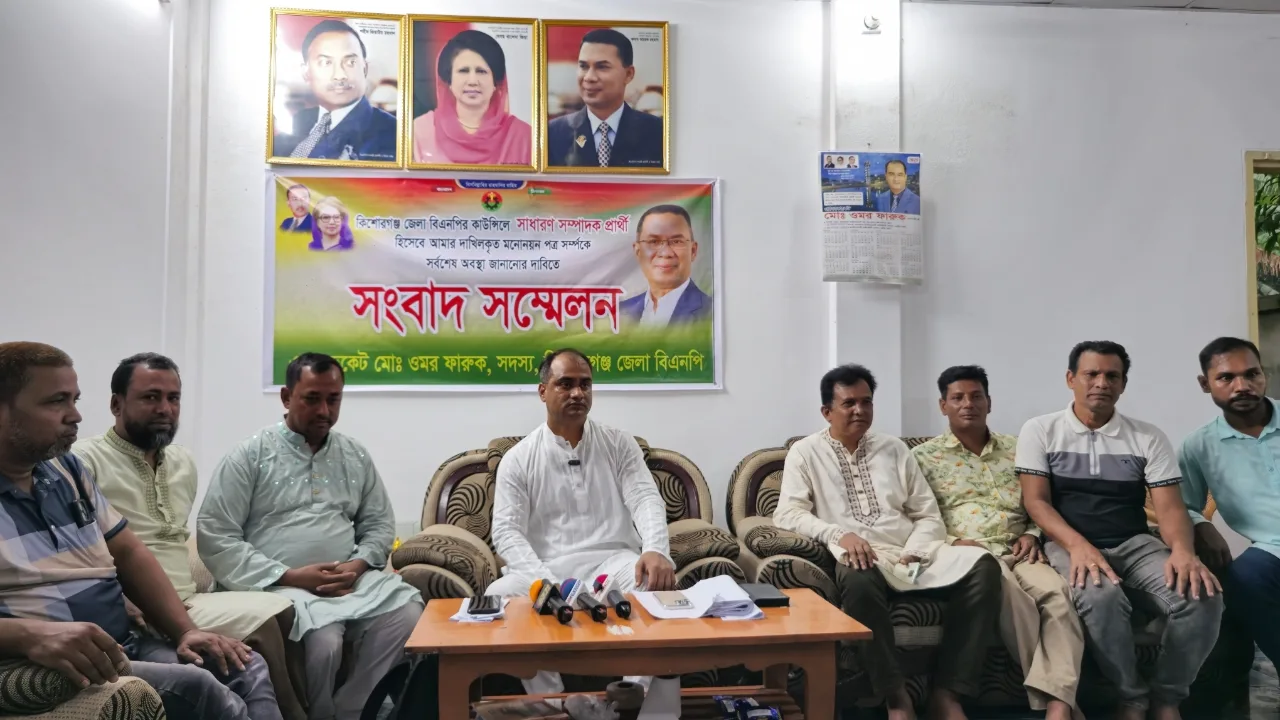 কিশোরগঞ্জ: আগামী ২০ সেপ্টেম্বর অনুষ্ঠিতব্য কিশোরগঞ্জ জেলা বিএনপির ত্রি-বার্ষিক সম্মেলনকে ঘিরে মনোনয়নপত্র জটিলতা তৈরি হয়েছে। জেলা বিএনপির সাধারণ সম্পাদক পদপ্রার্থী মো: ওমর ফারুক অভিযোগ করেছেন, তফসিল অনুযায়ী সব প্রার্থীকে বৈধ ঘোষণা ও প্রতীক বরাদ্দ দেওয়া হলেও তার মনোনয়নপত্রের ‘সর্বশেষ অবস্থা’ জানানো হয়নি।