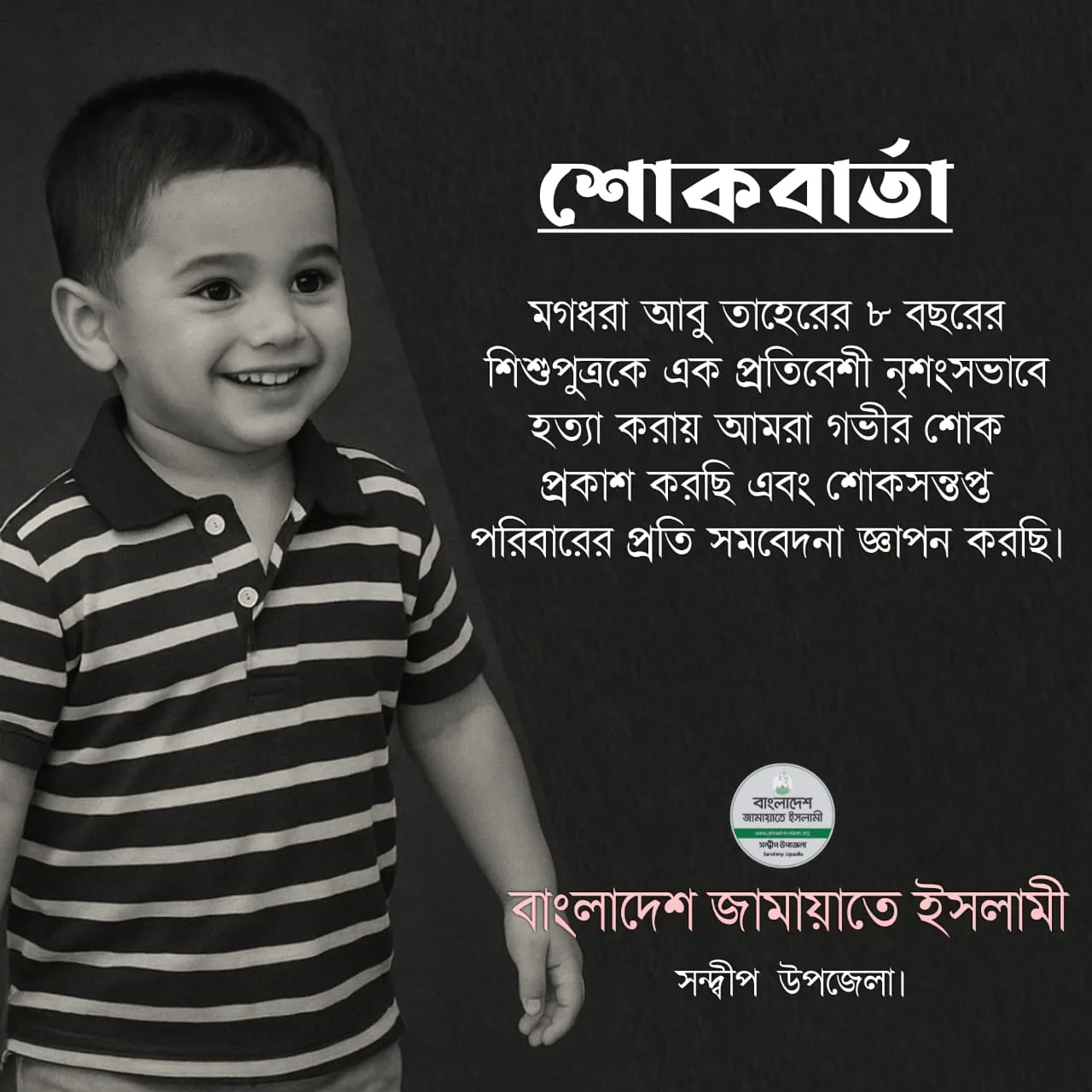 “আমরা এই মর্মান্তিক ঘটনার গভীর শোক প্রকাশ করছি। নিহত শিশুর শোকাহত পরিবারের প্রতি জানাই আন্তরিক সমবেদনা। একইসঙ্গে, এ বর্বরোচিত হত্যাকাণ্ডের দ্রুত বিচার ও দায়ীদের দৃষ্টান্তমূলক শাস্তি দাবি করছি।”