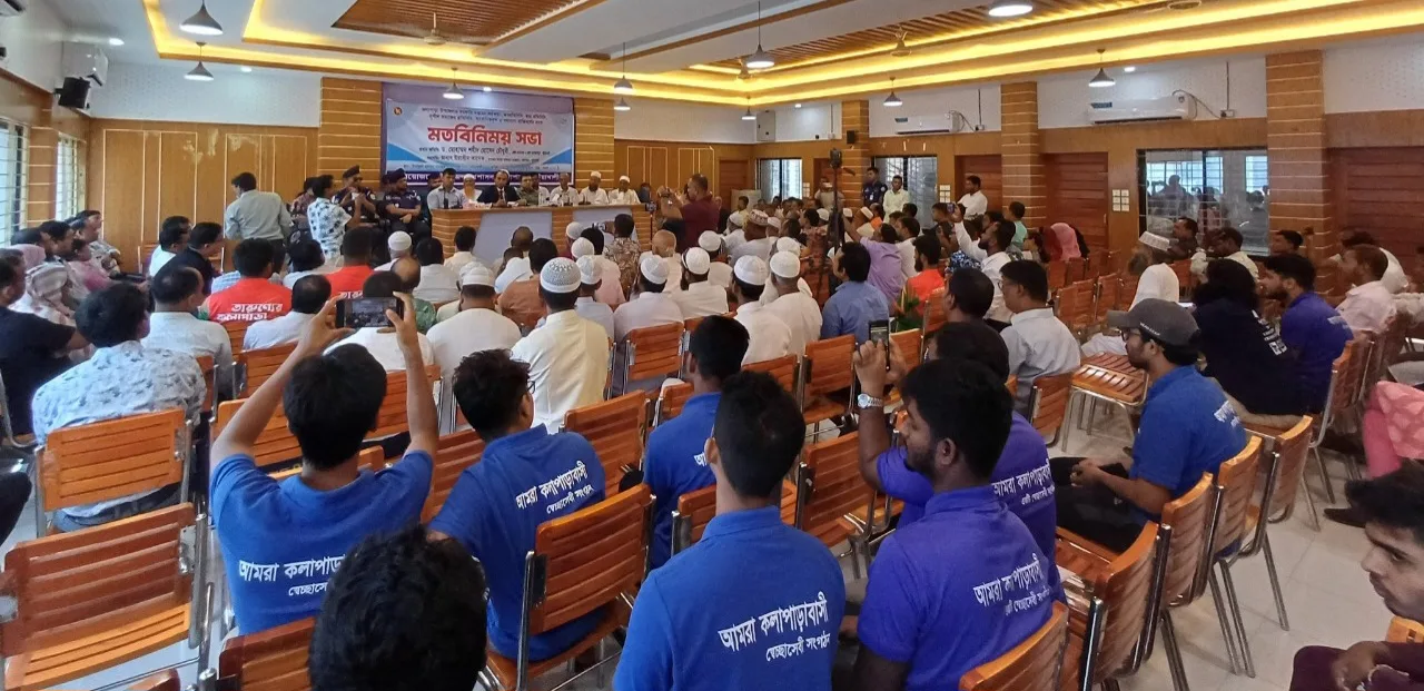 তানজিল জামান জয়,কলাপাড়া (পটুয়াখালী): কলাপাড়া উপজেলা প্রশাসনের উদ্যোগে সরকারি কর্মকর্তা, জনপ্রতিনিধি, ছাত্র প্রতিনিধি, সুশীল সমাজের প্রতিনিধি, সাংবাদিক ও বিভিন্ন রাজনৈতিক দলের নেতৃবৃন্দের অংশগ্রহণে এক মতবিনিময় সভা অনুষ্ঠিত হয়েছে।