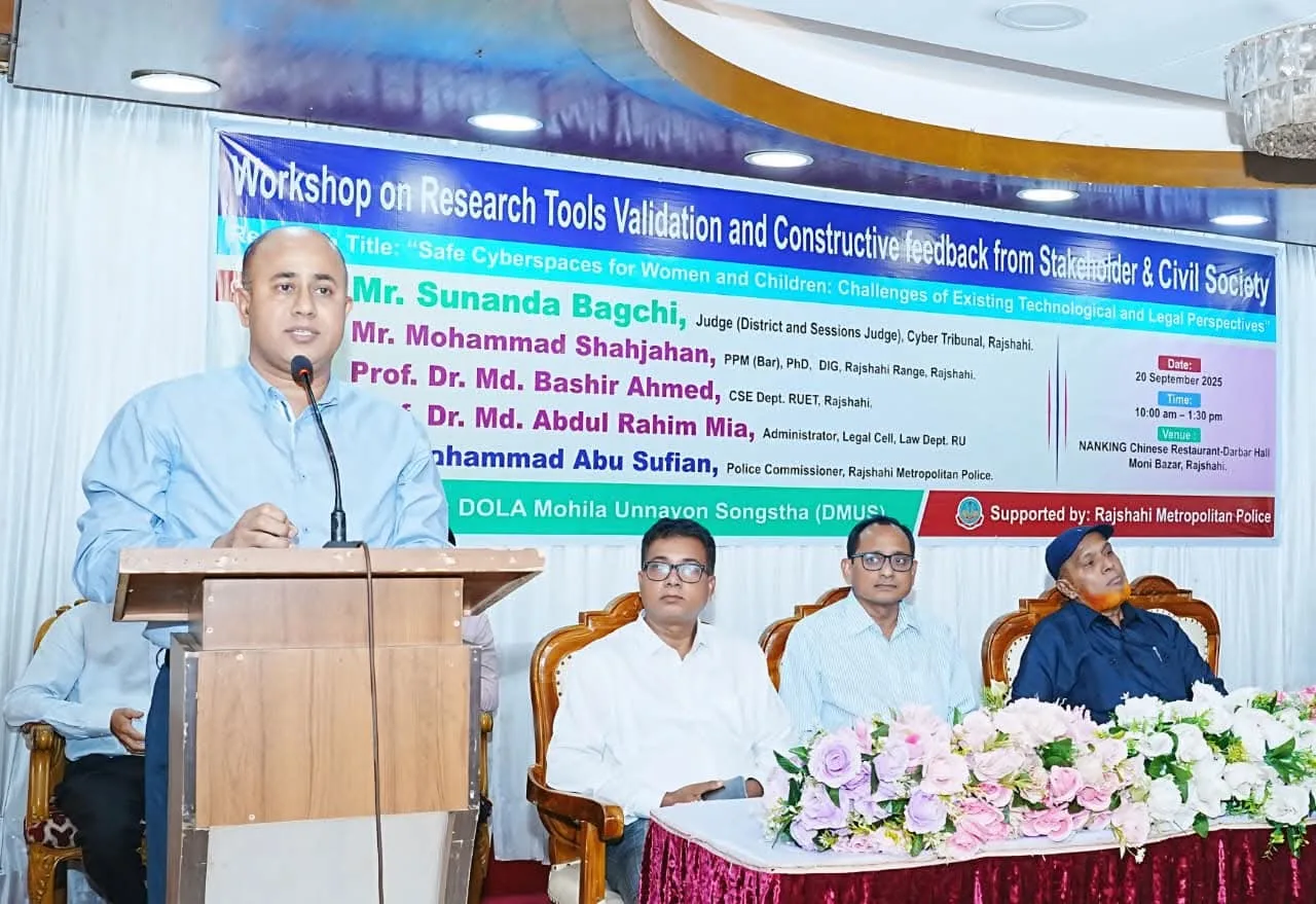 রিমন মাহমুদ, রাজশাহী: নারী ও শিশুদের জন্য নিরাপদ সাইবারস্পেস গড়ে তোলার লক্ষ্যে “নারী ও শিশুদের জন্য নিরাপদ সাইবারস্পেস: বিদ্যমান প্রযুক্তিগত এবং আইনি দৃষ্টিভঙ্গির চ্যালেঞ্জ” শীর্ষক গবেষণার ওপর ভিত্তি করে গবেষণা সরঞ্জাম যাচাইকরণ এবং স্টেকহোল্ডার ও নাগরিক সমাজের গঠনমূলক প্রতিক্রিয়া বিষয়ক কর্মশালা অনুষ্ঠিত হয়েছে।