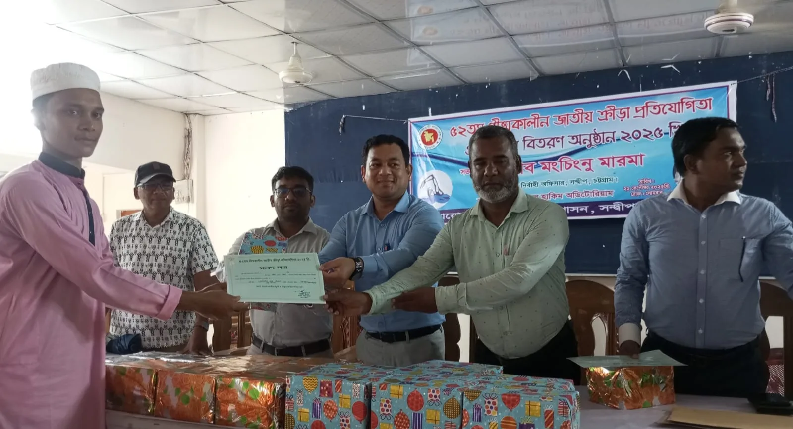 সন্দ্বীপ (চট্টগ্রাম) প্রতিনিধি: চট্টগ্রামের সন্দ্বীপ উপজেলায় সোমবার ৫২তম গ্রীষ্মকালীন ক্রীড়া প্রতিযোগিতার পুরস্কার বিতরণী অনুষ্ঠান অনুষ্ঠিত হয়েছে। উপজেলা প্রশাসন ও মাধ্যমিক শিক্ষা অফিসের উদ্যোগে কবি আব্দুল হাকিম পাবলিক অডিটোরিয়ামে এ অনুষ্ঠান হয়।