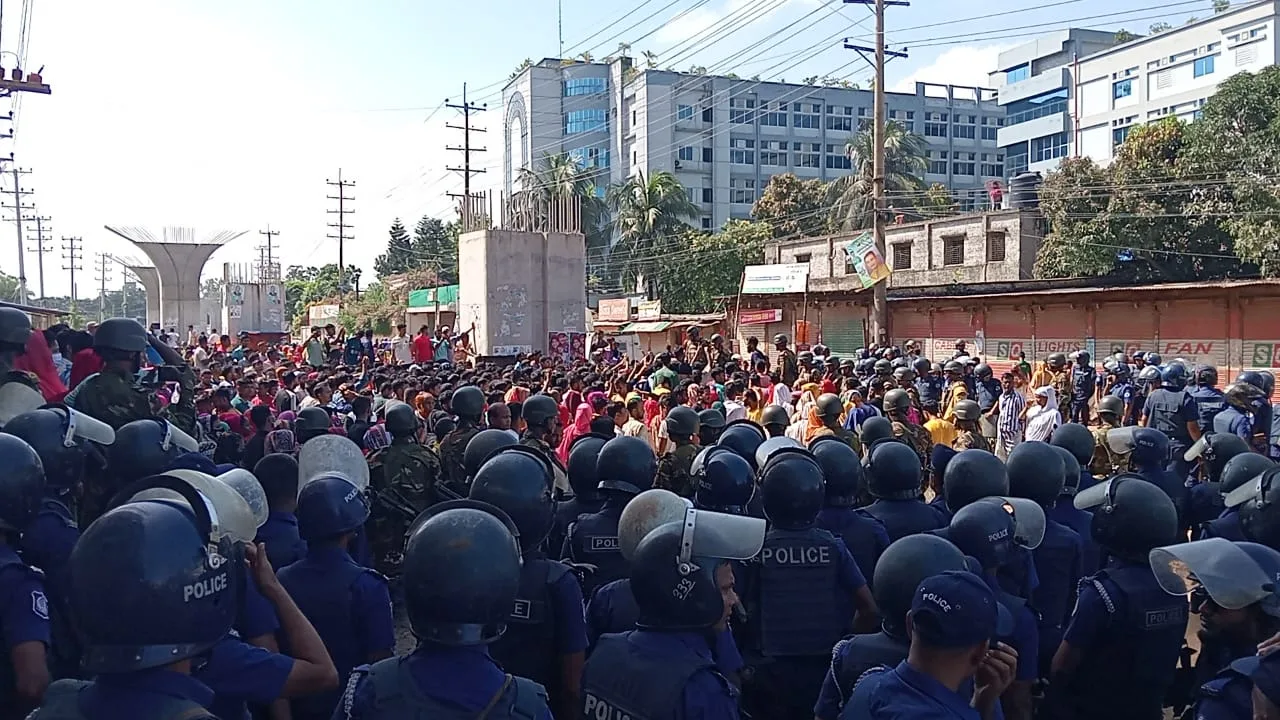 পুলিশ জানায়, সকালে বকেয়া বেতনের দাবিতে সড়ক অবরোধ করে বিক্ষোভ কর্মসূচি পালন করে নাসা গ্রুপের শ্রমিকরা। এতে সড়কে ব্যাপক যানজটের সৃষ্টি হয় এবং সড়কে চলাচলরতরা চরম দুর্ভোগের মধ্যে পড়ে। এ সময় পুলিশ ও সেনাবাহিনী তাদেরকে বুঝিয়ে সড়ক ছেড়ে দিতে বলেন। শ্রমিকরা সড়ক ছেড়ে দিতে অস্বীকার করলে তাদেরকে সরিয়ে দিতে সড়কে জল কামান নিক্ষেপ করা হয়।