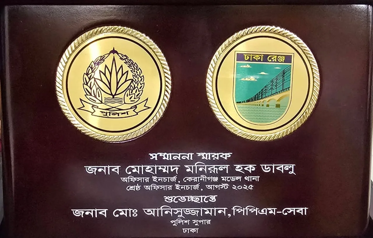 জানা যায়, ২০২৫ সালের ২০ এপ্রিল কেরানীগঞ্জ মডেল থানার দায়িত্ব গ্রহণের পর থেকেই তাঁর সুদক্ষ নেতৃত্বে কেরানীগঞ্জ মডেল থানার আইন-শৃঙ্খলা রক্ষা, অপরাধ দমন, অপরাধীদের গ্রেফতার ও মামলা গ্রহণ সহ বিভিন্ন গুরুত্বপূর্ণ দায়িত্ব পালন করায় তাকে ঢাকা জেলা পুলিশের শ্রেষ্ঠ অফিসার ইনচার্জ হিসেবে নির্বাচিত করা হয়।