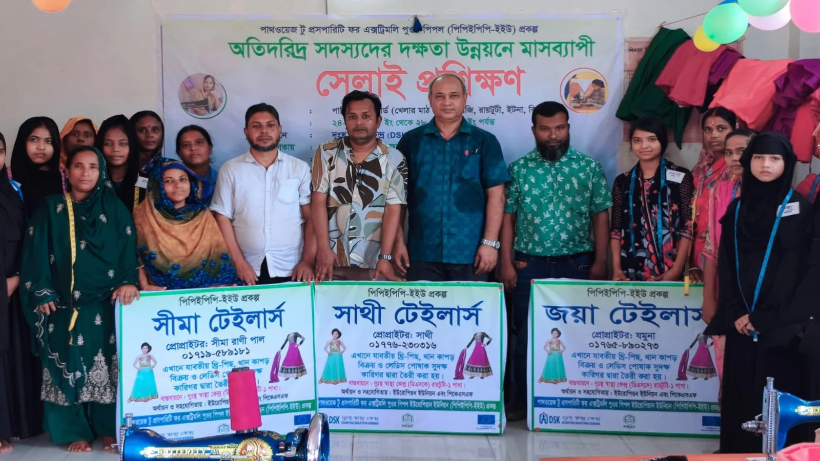 ডিএসকে কর্মকর্তারা জানান, ২০২০ সাল থেকে ইউরোপীয় ইউনিয়ন (ইইউ) ও পিকেএসএফ-এর অর্থায়নে ডিএসকে ইটনা উপজেলার চৌগাংগা ও রায়টুটী এবং মিঠামইন উপজেলার ঢাকী ও বৈরাটি ইউনিয়নে “পিপিইপিপি-ইইউ প্রকল্প” বাস্তবায়ন করছে। এ প্রকল্পের আওতায় এখন পর্যন্ত ১০টি ব্যাচে ২৫০ জন নারীকে প্রশিক্ষণ ও সেলাই মেশিন দেওয়া হয়েছে।