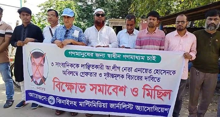 বক্তারা সাংবাদিক লাঞ্ছনার তীব্র নিন্দা ও প্রতিবাদ জানান। বক্তারা বলেন, পেশাগত দায়িত্ব পালনের অংশ হিসেবে সাংবাদিকরা যেকোনো প্রতিষ্ঠানে তথ্য সংগ্রহ করতে পারেন। কিন্তু আওয়ামী লীগ নেতা এনায়েত হোসেন সাংবাদিকদের সঙ্গে যে আচরণ করেছেন, তা পেশাগতভাবে সাংবাদিকদের মধ্যে নিরাপত্তাহীনতা সৃষ্টি করেছে।