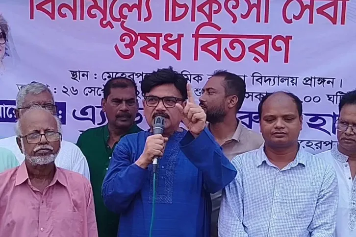 ভোরের দূত, মেহেরপুর: বেকার ও অসহায় মানুষের চিকিৎসা সেবা নিশ্চিত করার লক্ষ্যে মেহেরপুরে দিনব্যাপী বিনামূল্যে মেডিকেল ক্যাম্প অনুষ্ঠিত হয়েছে। শুক্রবার (২৬ সেপ্টেম্বর) মেহেরপুর শহরের মাধ্যমিক বালিকা বিদ্যালয় প্রাঙ্গণে এই ক্যাম্পের আয়োজন করেন জেলা বিএনপির সাধারণ সম্পাদক অ্যাডভোকেট কামরুল হাসান।