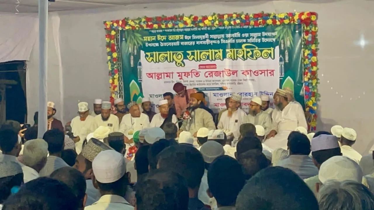 মিরসরাই উপজেলা, চট্টগ্রাম: চট্টগ্রামের মিরসরাইয়ের চৈতন্যেরহাট বাজার ব্যবসায়ী ও সিএনজি চালক সমিতির যৌথ উদ্যোগে অনুষ্ঠিত হয়েছে সালাতু সালাম মাহফিল। বৃহস্পতিবার (২৫ সেপ্টেম্বর) রাতভর উপজেলার দুর্গাপুর ইউনিয়নের চৈতন্যেরহাট সিএনজি স্ট্যান্ডে আয়োজিত এ মাহফিলে ইসলামি চেতনায় মুখরিত হয়ে ওঠে পুরো পরিবেশ।