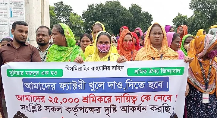 মানববন্ধন কর্মসুচী উপস্থিত হয়ে শ্রমিকরা বলেন, সম্প্রতি শ্রমিকদের বেতন ভাতা না দিয়ে নাসা গ্রুপের ১৬টি তৈরি পোশাক কারখানা বন্ধ ঘোষনা করেন। এতে করে কারখানাগুলোর প্রায় পচিশ হাজার শ্রমিক মানবেতর জীবন যাপন করছেন। নতুন করে কোথায় চাকরি পাবেন তা নিয়ে দেখা দিয়েছে অনিশ্চয়তা। এসময় শ্রমিকরা দ্রুত কারখানাগুলো খুলে দিয়ে শ্রমিকদের বেতন ভাতা পরিশোধের আহবান জানান।