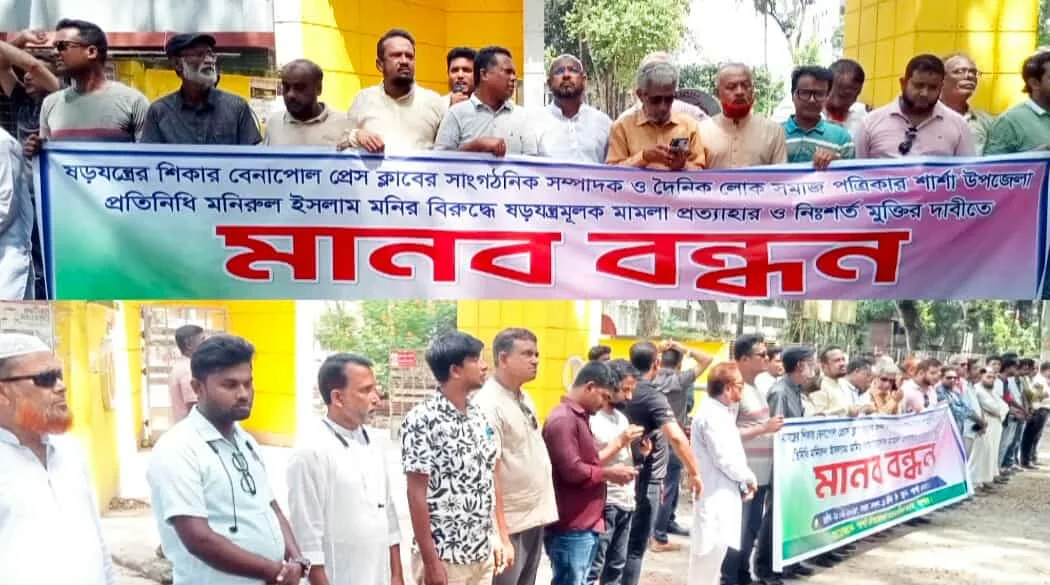 শার্শায় সাংবাদিক মনিরের মুক্তির দাবিতে মানববন্ধন, ওসির অপসারণ দাবি