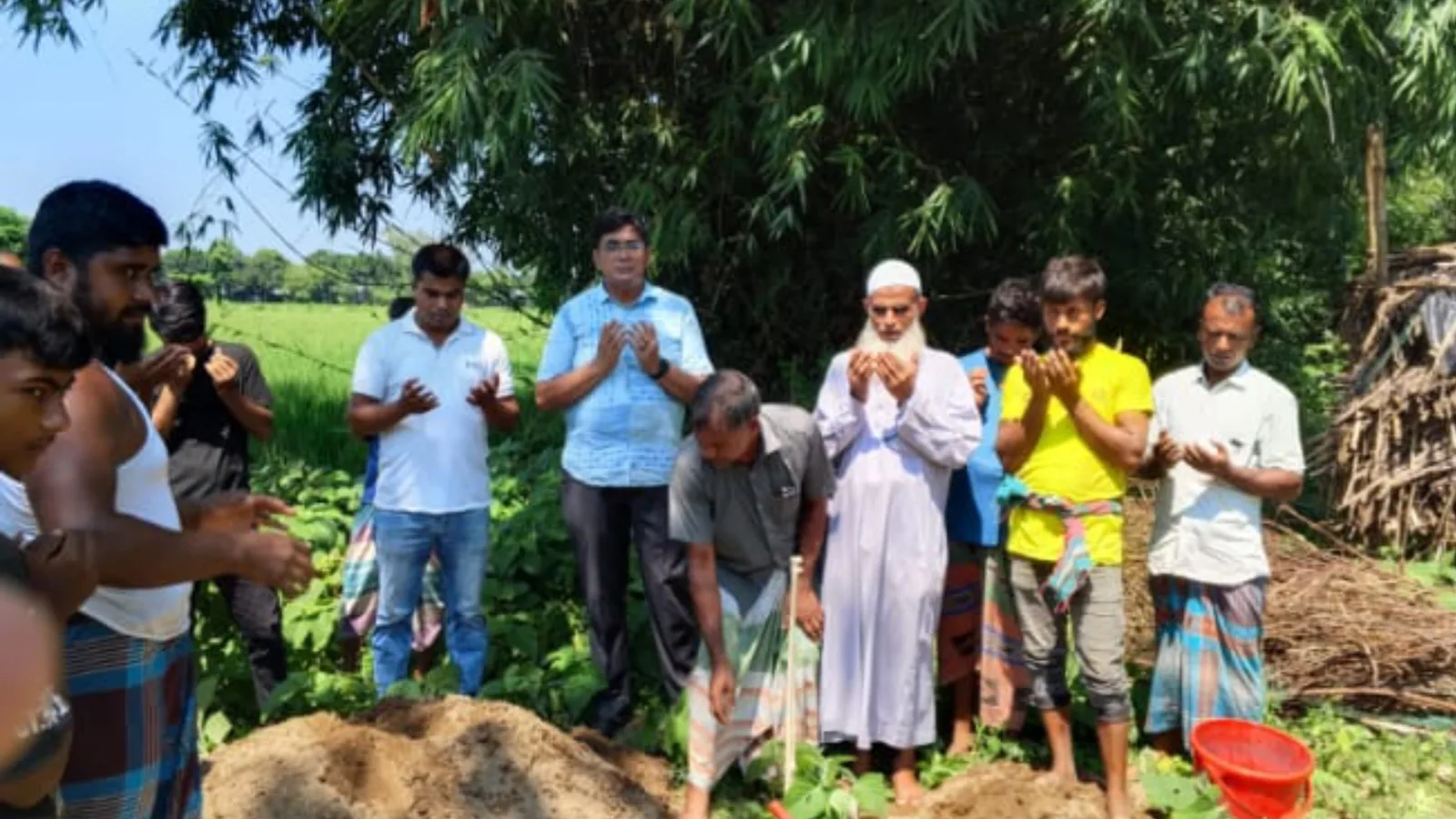 আলোচনা সভা শেষে মোনাজাত ও কবরবাসীর জন্য দোয়া করেন খাদেমুল ইসলাম ।