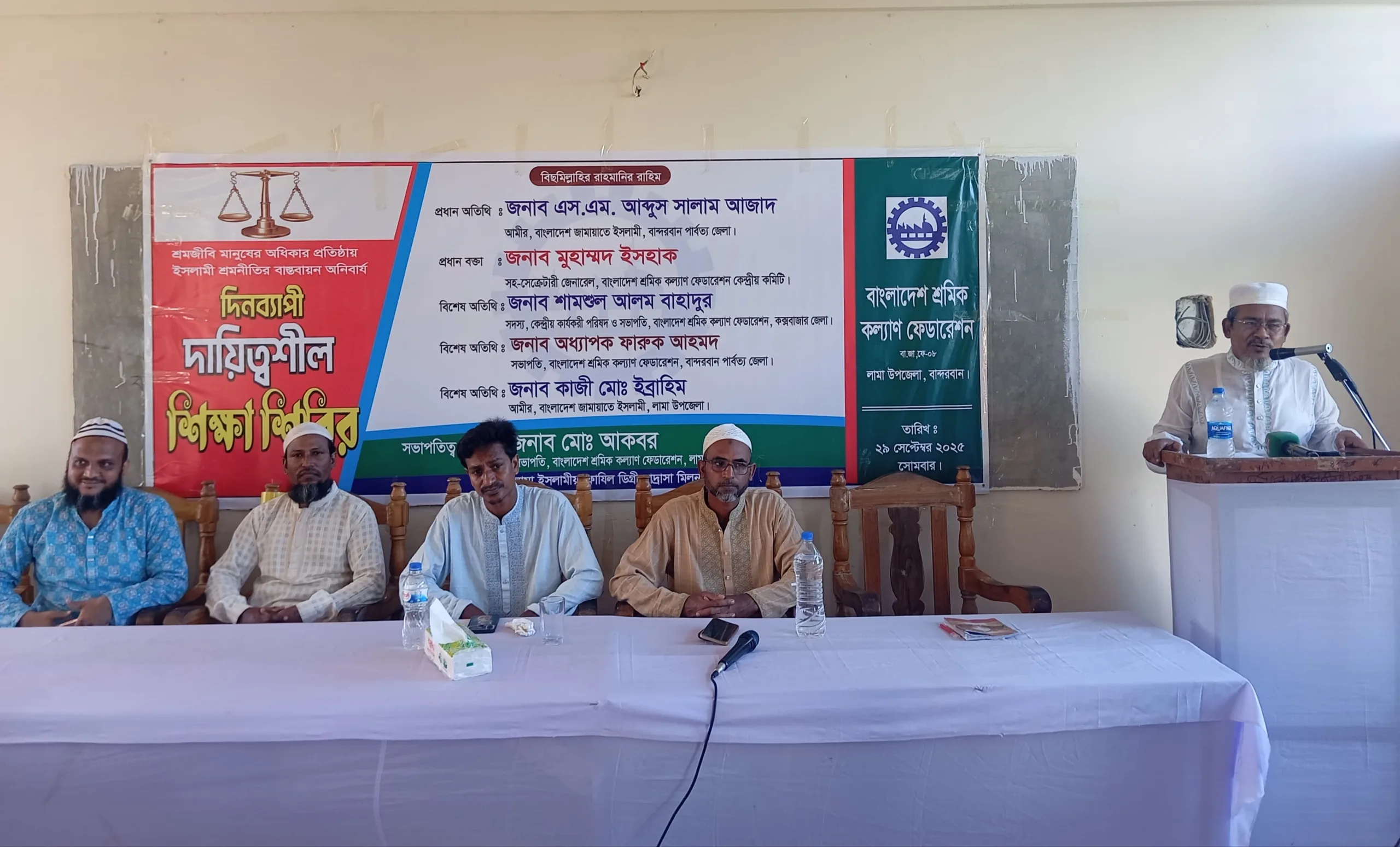 বাংলাদেশ শ্রমিক কল্যাণ ফেডারেশন লামা উপজেলা শাখার সহ সভাপতি মো. শামসুল হকের পরিচালনায় ও উপজেলা সভাপতি মো. আকরবের সভাপতিত্বে দায়িত্বশীল শিক্ষা শিবিরের প্রধান অতিথি হিসেবে উপস্থিত ছিলেন বাংলাদেশ জামায়াতে ইসলামী বান্দরবানের জেলা আমীর এস. এম. আব্দুস সালাম আজাদ। প্রধান বক্তা ছিলেন, শ্রমিক কল্যাণ ফেডারেশনের কেন্দ্রীয় কমিটির সহ-সেক্রেটারি জেনারেল মুহাম্মদ ইসহাক। বিশেষ অতিথি ছিলেন ফেডারেশনের কক্সবাজার জেলা সভাপতি শামশুল আলম বাহাদুর, বান্দরবান জেলা সভাপতি অধ্যাপক ফারুক আহমদ।