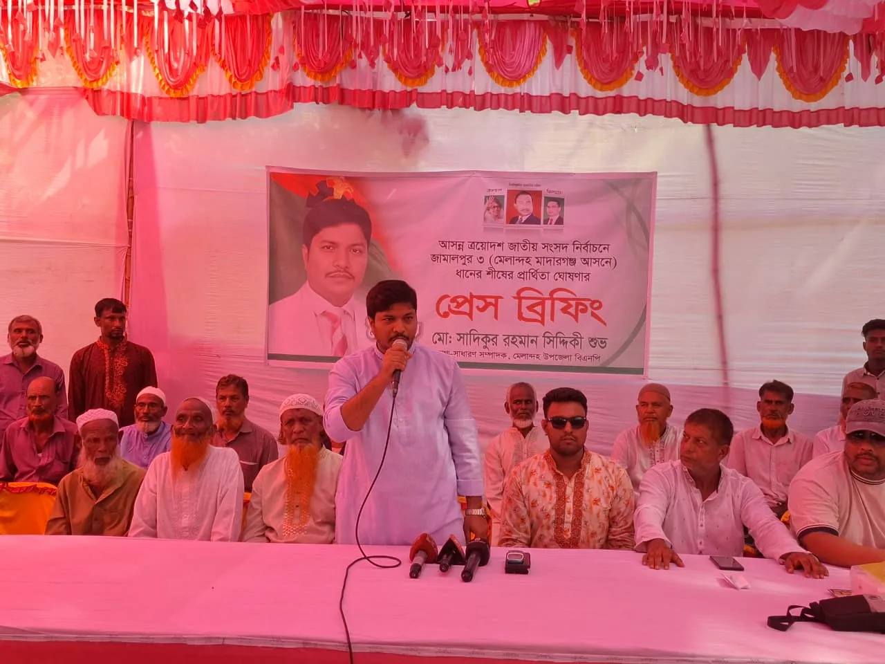 সংবাদ সম্মেলনে সাদিকুর রহমান সিদ্দিকী শুভ বলেন আল্লাহ আমাকে অনেক দিয়েছেন আমি মেলান্দহ – মাদারগঞ্জবাসীর ভাগ্য পরিবর্তন করতে চাই, দারিদ্র্যমুক্ত জীবন গড়াসহ এলাকার অসহায় মানুষদের পাশে দাঁড়াতে চাই। এলাকার জনগণের কাজ থেকে আমার কোন কিছু চাওয়ার নেই, মেলান্দহ – মাদারগঞ্জবাসী আমাকে সুযোগ দিলে সমাজ উন্নয়নে প্রতিনিয়ত কাজ করে যাব ইনশাল্লাহ।