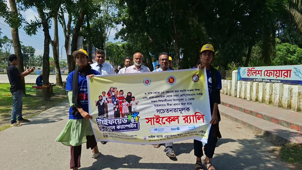 সাইন্স অ্যান্ড এডুকেশন ইয়ুথ ফাউন্ডেশনের সভাপতি এহসান আহমাদ নোমান বলেন, আজকের সাইকেল র‍্যালিটির মূল উদ্দেশ্যে ৯ মাস থেকে ১৫ বছর বয়সী যারা এখনো টিকার রেজিস্ট্রেশন করে নি, তাদের রেজিস্ট্রেশনে উদ্বুদ্ধ করা। আমরা চাই বরগুনা জেলায় শতভাগ শিশু টাইফয়েড ভ্যাকসিন গ্রহণ করবে।