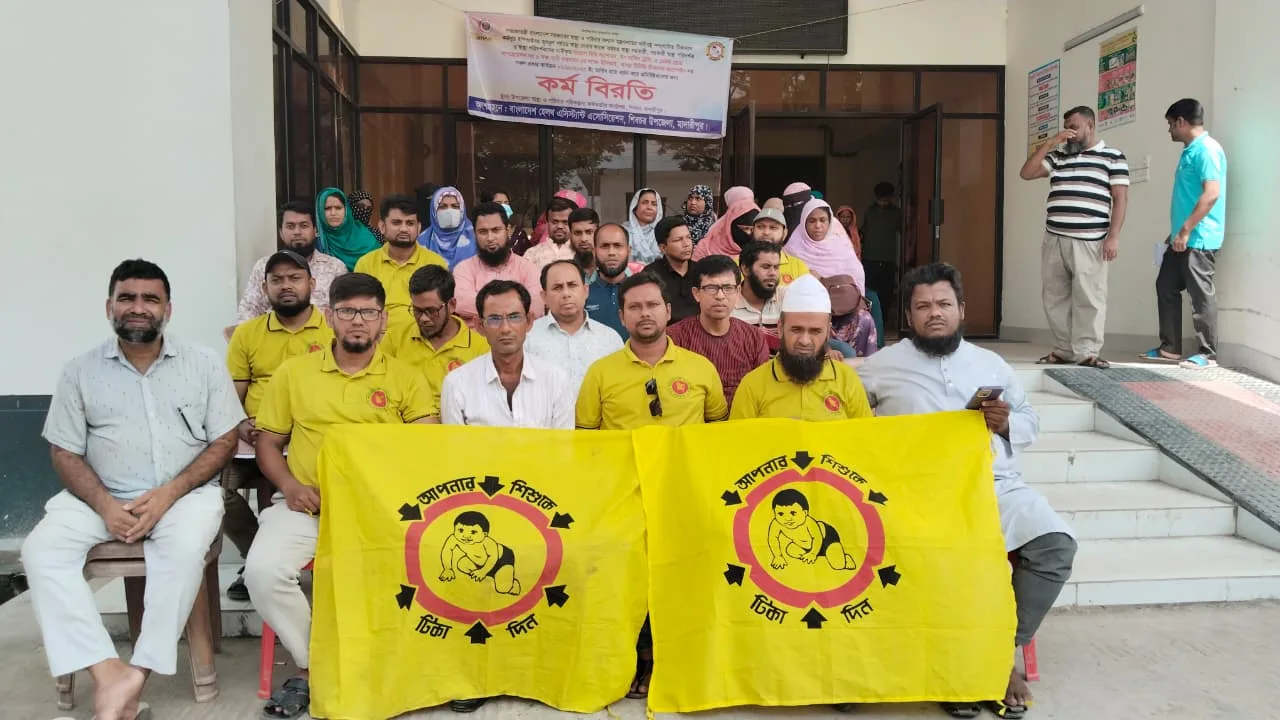 শিবচরে ছয় দফা দাবিতে স্বাস্থ্য সহকারীদের অবস্থান কর্মসূচি