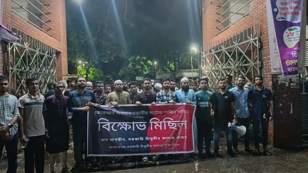 শিক্ষার্থীরা আরও বলেন, পবিত্র কুরআনের অবমাননা দেশের সংবিধান ও ধর্মীয় সহাবস্থানের চেতনার পরিপন্থী। ভবিষ্যতে এমন ঘটনা রোধে কঠোর আইনগত ব্যবস্থা নেওয়ার আহ্বান জানান তারা।