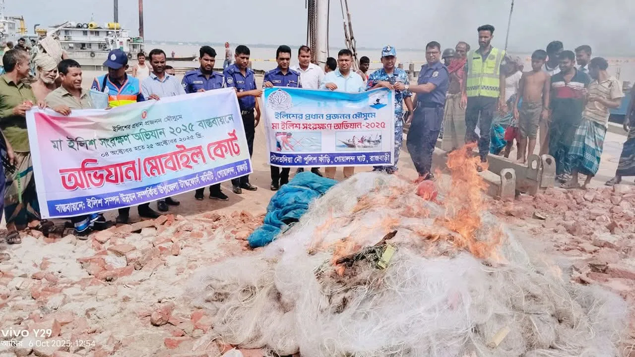 সরকার ঘোষিত ৪ অক্টোবর থেকে ২৫ অক্টোবর পর্যন্ত সময়কে ইলিশের প্রধান প্রজনন মৌসুম ঘোষণা করা হয়েছে। এই সময়ে সারাদেশে ইলিশ ধরা, পরিবহন, মজুদ ও বিক্রি সম্পূর্ণ নিষিদ্ধ। তবে নিষেধাজ্ঞা উপেক্ষা করে কিছু জেলে নদীতে মাছ ধরতে নামায় প্রশাসন অভিযান চালায়।